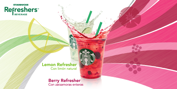 Los nuevos “Refreshers” de Starbucks son bebidas con fruta real y con extracto de café verde, que le aporta un ligero contenido de cafeína. ¡Delicioso y energizante!