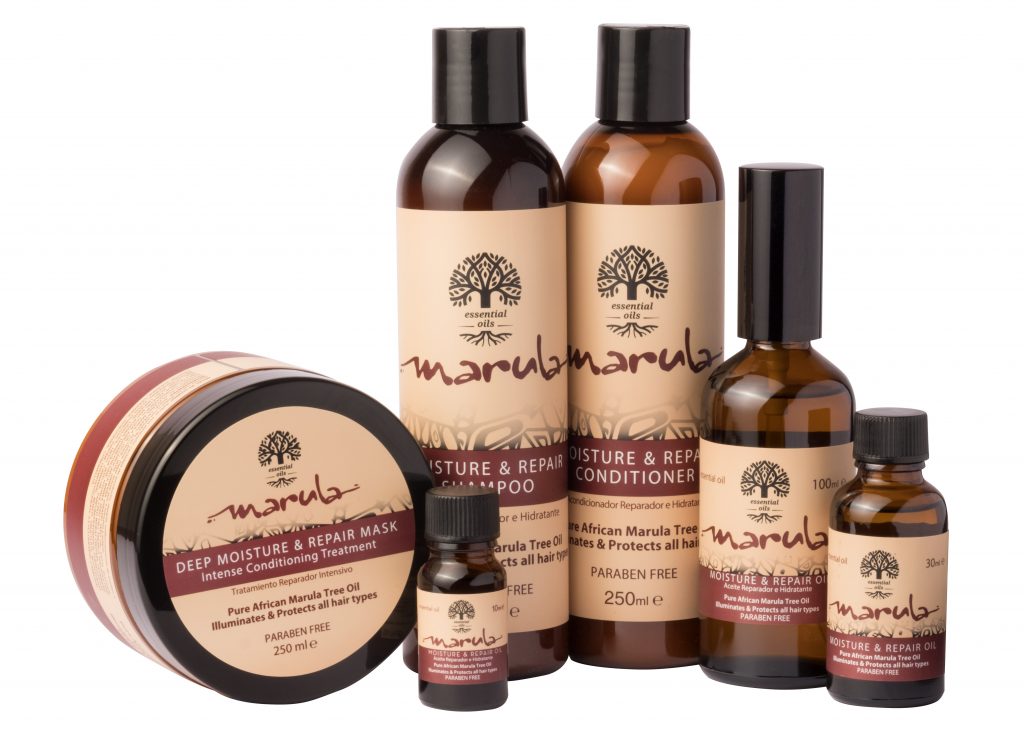 Compuesta por Shampoo, Acondicionador, Aceite y Mascarilla, todos hidratantes y reparadores, su principal ingrediente es el Aceite de Marula proveniente del fruto maduro del árbol del mismo nombre, nativo del centro y sur de África.