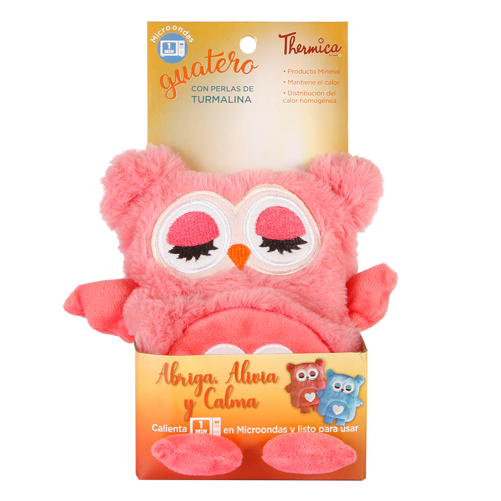calienta en el microondas en tan solo 1 minuto. Viene con funda de búho en dos colores, celeste y rosado.