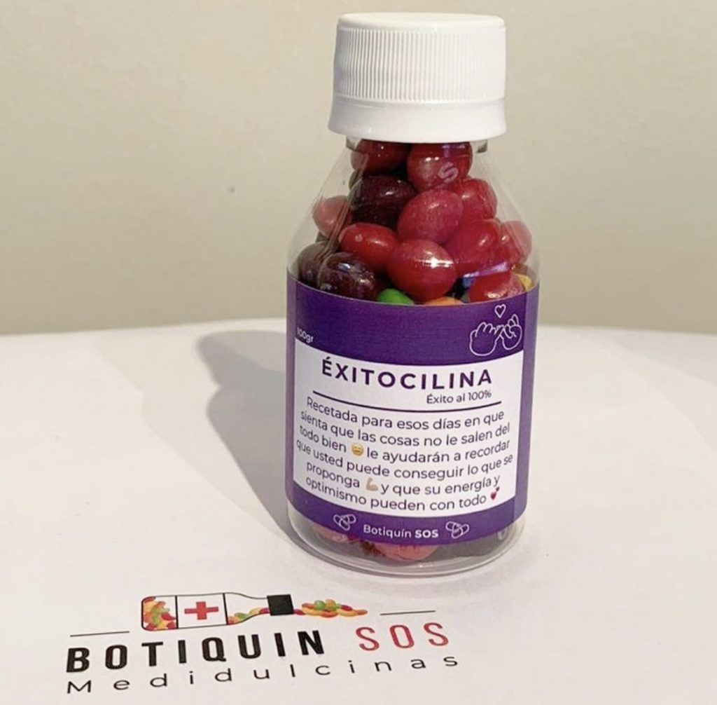 Cada frasquitp, contiene golosonas y un mensaje, que como dice Claudia, es un dulce con poderes mágicos, para subir el ánimo, para empoderarse, para recordar a una persona, para recordar una amistad , un amor, etc. Citando a Humberto Maturana “las palabras construyen realidad” y Claudia es una convencida que cuando se cree en el amor, en pensar positivo y en las buenas vibras, cosas lindas pasan.