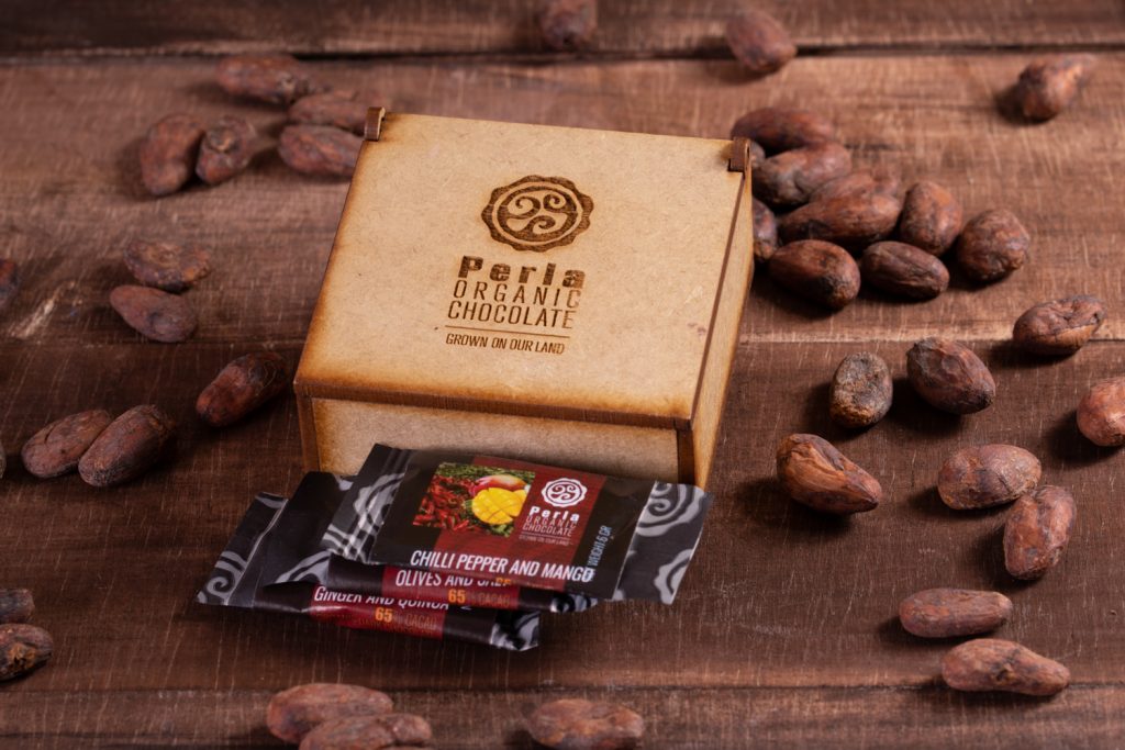 “Perla Chocolates es una marca innovadora, con sabores exóticos, exclusivos y muchas variedades. Por ejemplo, barras de chocolate blanco de frutilla con quinoa pop, barras de pistacho con sal, barras raw con 70% cacao, además de chips, monedas, chocolate blanco, barras con sabor mango- ají, entre muchas otras opciones. Y por supuesto, la mayoría de nuestros productos se pueden encontrar entre 60 y 100% de cacao”, comenta Giovana Gallardo.