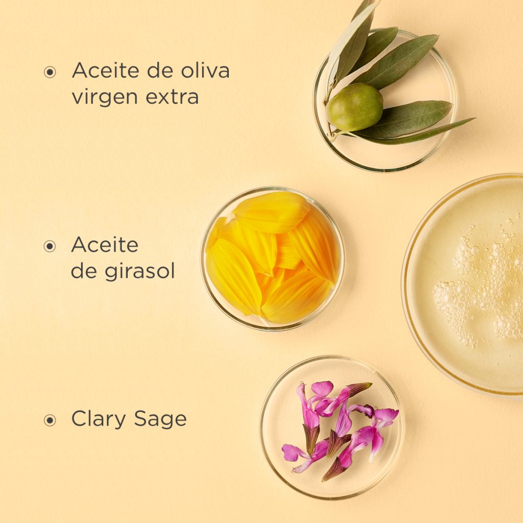 ·      Aceite de oliva virgen extra, con sus beneficios nutritivos y antioxidantes, así como propiedades protectoras y regeneradoras.