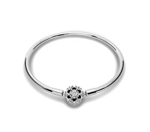 Se trata del The Unique Bracelet, un brazalete tipo bangle en plata esterlina con un broche en forma de copo de nieve. Estos cristales de hielo son conocidos por sus complejos detalles geométricos, irrepetibles entre uno y otro. Gracias al célebre craftsmanship de Pandora, la marca logró recrear esta figura para dar origen a un diseño tan único y memorable como tú.