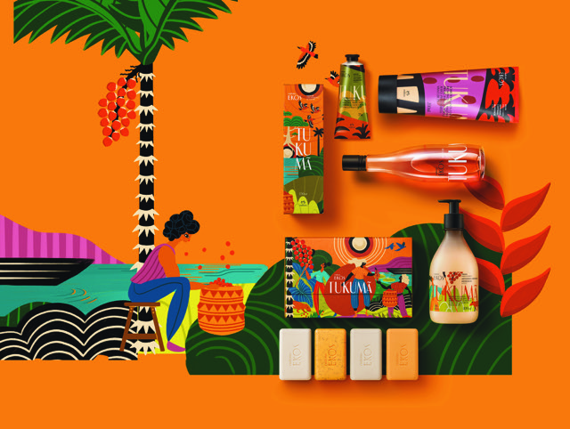 3 Trata tus manos: utiliza la pulpa hidratante para manos, luego del lavado y siempre que sientas necesidad. Trátalas con la misma importancia que cuidas tu rostro. 4. Perfumación: puedes finalizar la rutina perfumándote con el frescor, que tiene un camino olfativo floral cítrico. Natura ha lanzado esta edición exclusiva para la línea Ekos Tukumá en colaboración con Winny Tapajós, indígena de la etnia Tapajó con su obra. Con ello, resaltamos el papel fundamental de la mujer, como también el poder de los bioactivos naturales, al tiempo de impulsar la causa Amazonía viva.