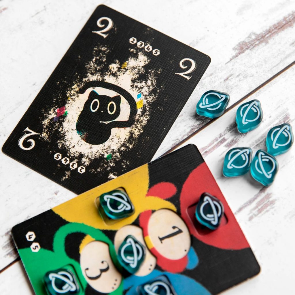 Inspirado en la física cuántica y la historia del gato en la caja de Schrödinger, “Cat in the Box” revoluciona el género de juegos de bazas. Hasta 5 jugadores desafían lo conocido porque las cartas de este juego no tienen color hasta que los jugadores dicen de qué color quieren que sean, y cuando ya no tengas cartas de dicho color (cuando todas son en realidad negras), podrías generar una Paradoja y perder puntos.