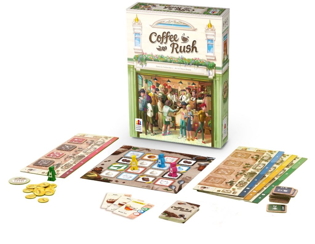 Si te molesta cuando se demoran con tu pedido, Coffee Rush te pondrá al otro lado de la barra como uno de los 4 baristas que compiten por completar los pedidos que se acumulan. Deberán recolectar los ingredientes del tablero y preparar las bebidas, pero cada vez que completes una orden, se le sumarán pedidos a los demás jugadores, y si no alcanzaste a completar una, se acumulará junto con las malas reseñas.