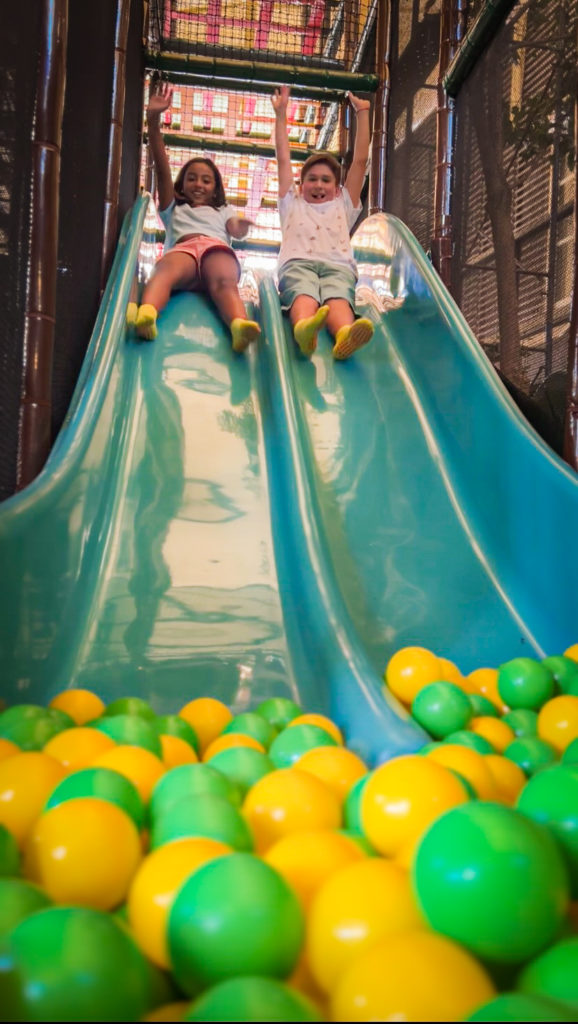 cuenta con divertidos obstáculos, que incluye muro de escalada, tobogán, piscina de pelotas,