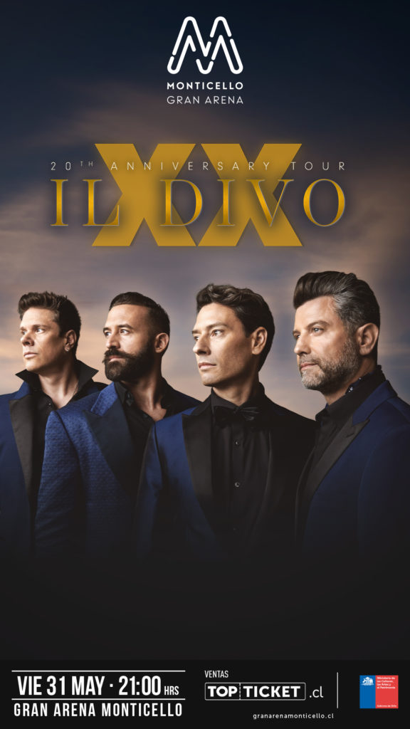 Luego de las exitosas presentaciones que Il Divo ha realizado en Gran Arena Monticello, el icónico cuarteto regresa al recinto de San Francisco de Mostazal en el marco de “Il Divo 20th Anniversary Tour”, para cautivar a sus fanáticos y esta vez lo harán con nuevo material musical llamado “XX: Álbum del 20 Aniversario” que tiene como single de lanzamiento “Crazy” y cuenta con 10 canciones en total.