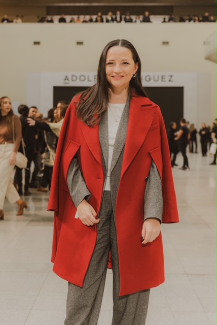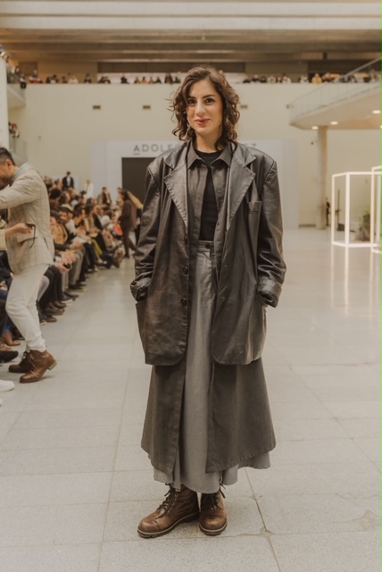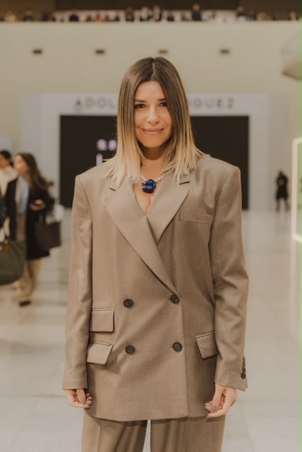 Además, se incorporaron cuidadosamente colores más vibrantes como el verde oliva y el azul bebé, que aportaron frescura y suavidad. El azul Klein, con su intensidad y profundidad, y ciertos matices de rojo, inspirando energía a las mezclas, elevando la base neutra sobre la que se sostuvo toda la colección. La influencia de los estilismos japoneses fue evidente en los cortes rectos que dominaron la colección, reflejando una inclinación hacia la pureza de las líneas y la funcionalidad en el diseño. También estuvieron presentes guiños al kimono nipón y sus reinterpretaciones, adoptando un minimalismo japonés donde cada línea y forma estaban pensadas para crear una estética sencilla, sofisticada y vanguardista al mismo tiempo.