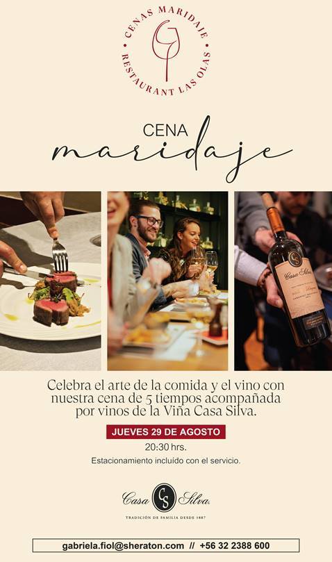 Sheraton Miramar invita a todos los amantes de la alta gastronomía y los vinos de calidad a una cena exclusiva que celebra el arte de la comida y el vino. El próximo jueves 29 de agosto, a las 20:30 horas, los asistentes podrán disfrutar de una exquisita cena de 5 tiempos cuidadosamente maridada con los vinos delicados de Viña Casa Silva, una de las bodegas más prestigiosas de Chile.