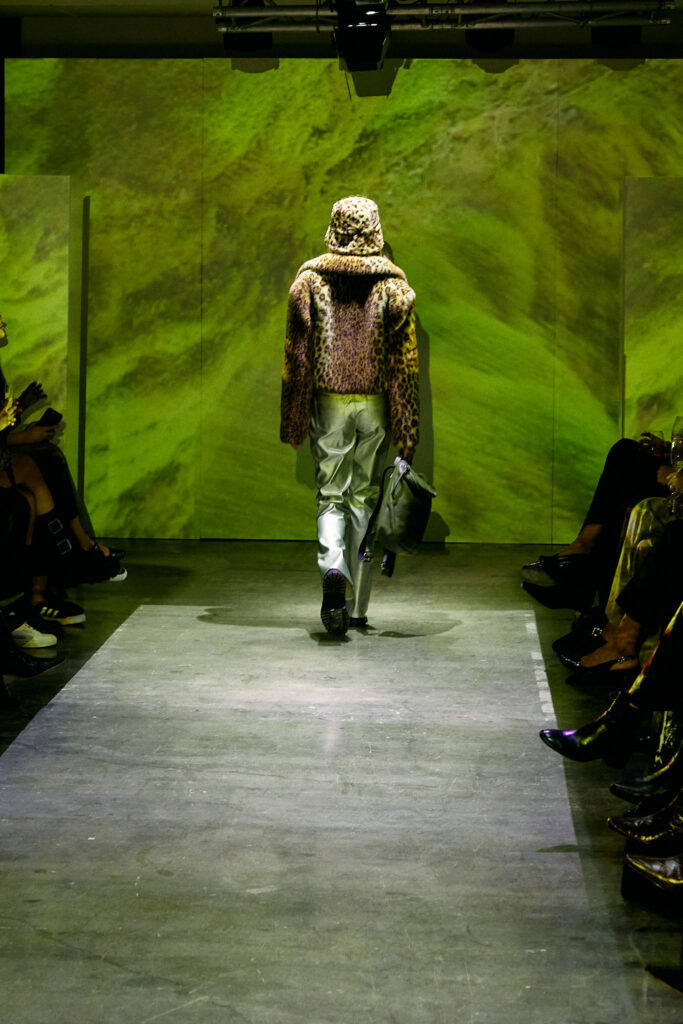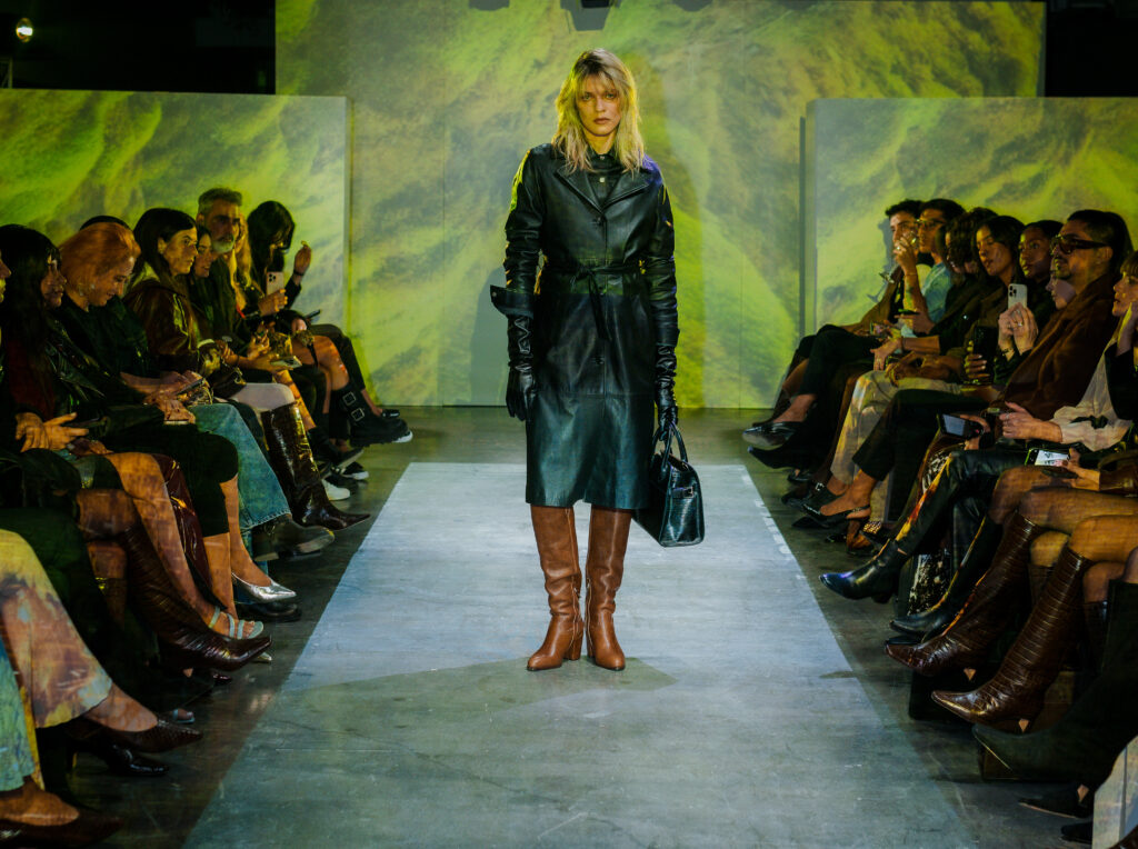 La colección destacó por el protagonismo del cuero y la gamuza, materiales icónicos de la marca, reinterpretados en chaquetas puffer metalizadas, conjuntos monocromáticos y siluetas minimalistas que redefinen la elegancia urbana. Los detalles en relieve y las texturas naturales se fusionaron con estructuras arquitectónicas, creando un equilibrio visual que evocaba el espíritu dual de la colección.