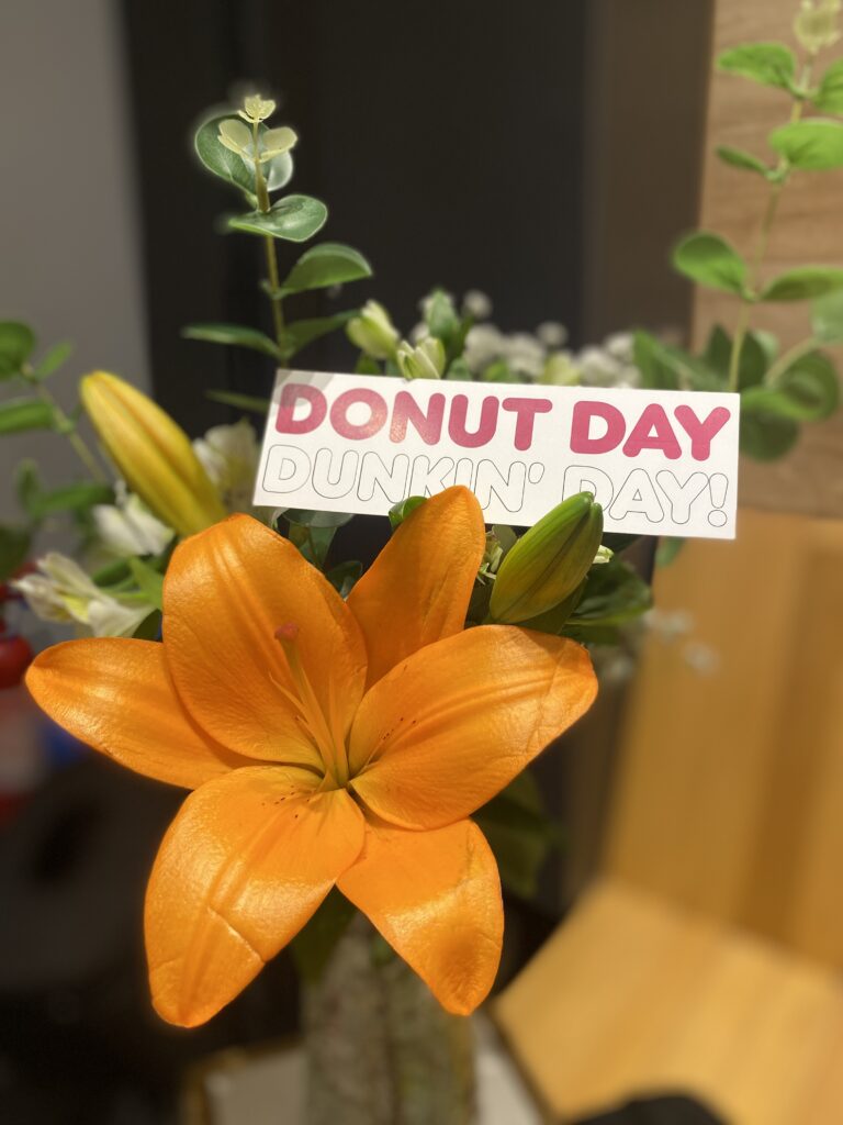 El Donut Day tiene su origen en la Primera Guerra Mundial, cuando el doctor Morgan Pett regaló una donut a un teniente general en la base donde servía. Dice la historia que éste, agradecido por la acción del doctor y el delicioso bollo en forma de rosquilla, decidió organizar un evento para recaudar fondos y así poder regalar a cada soldado herido la misma rosquilla. A esta iniciativa se unió luego The Salvation Army, cuya labor es recordada, entre otras cosas, por la presencia de las ‘Donut Dollies’, voluntarias francesas que en 1918 apoyaron a los soldados estadounidenses, proveyéndoles panecillos y los populares donuts. En reconocimiento a la labor de estas mujeres se creó el Donut Day, celebrándose por primera vez el 7 de junio de 1938, fecha que hoy se conmemora cada primer viernes de junio.