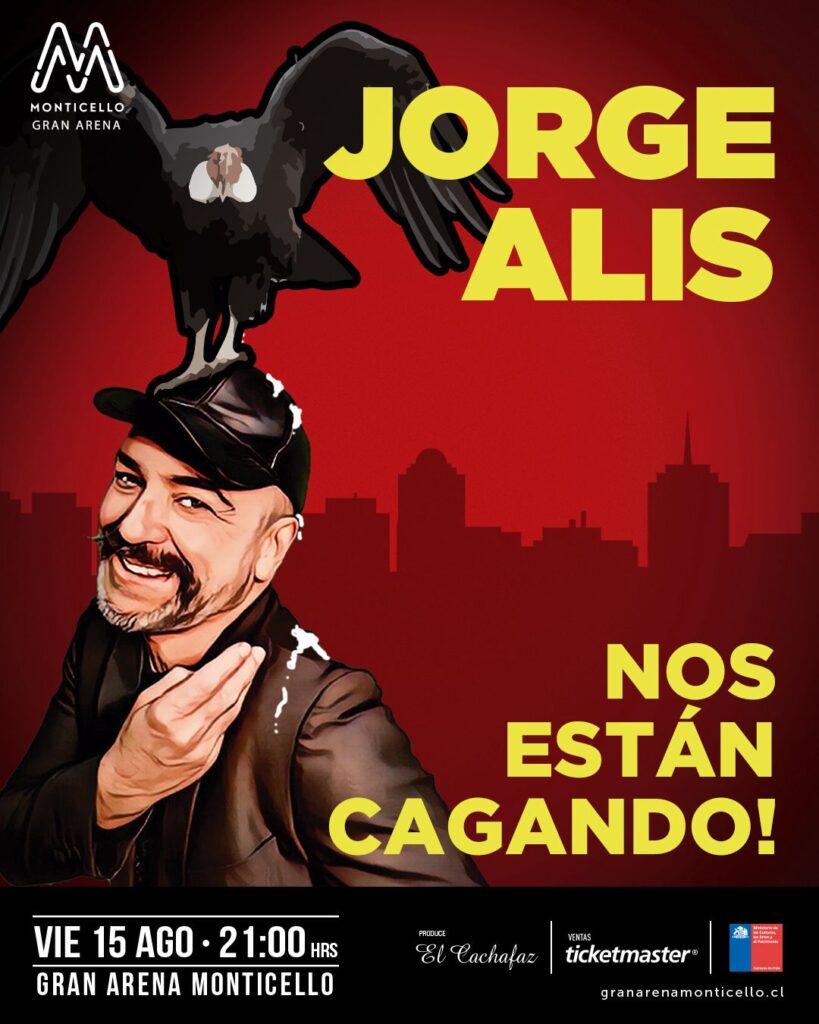 Luego de las exitosas presentaciones que ha realizado en Gran Arena Monticello, Jorge Alis regresa al recinto de San Francisco de Mostazal con su nuevo show llamado “Nos están cagando”. Desde las 21.00 horas los fanáticos de la comedia podrán disfrutar del humor único del argentino más querido de nuestro país. Las entradas están a la venta por el sistema Ticketmaster.
