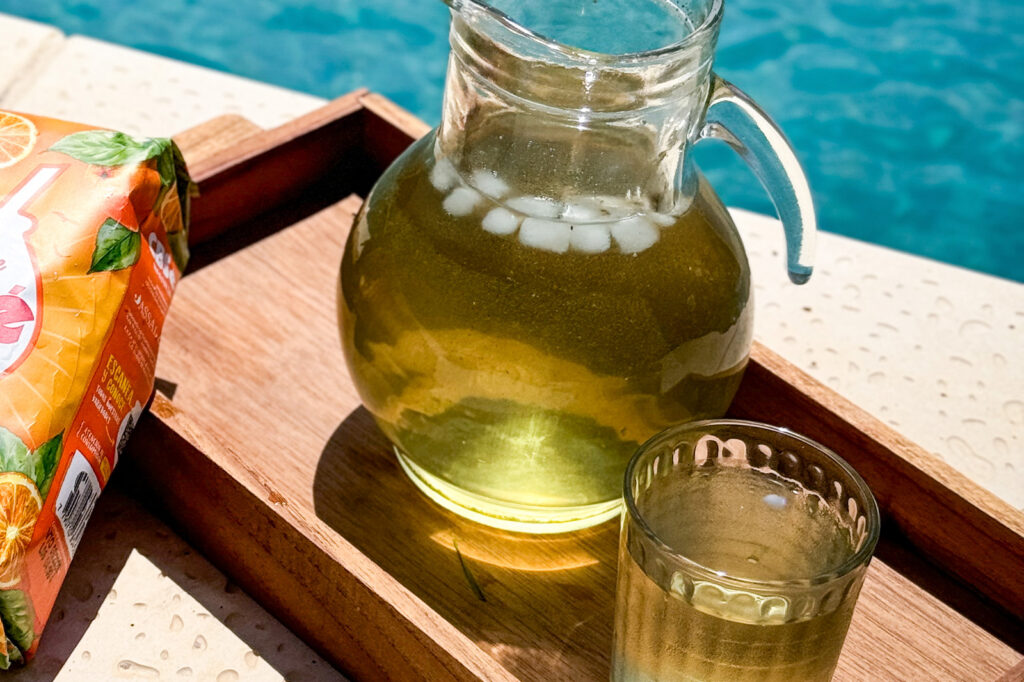 2) Una vez que se enfríe, agrega hielo, rodajas de fruta a elección y endulzante a gusto.