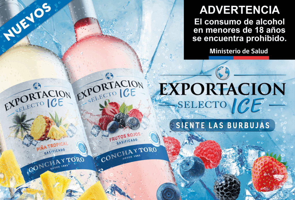 La marca de vinos Exportacion anunció el lanzamiento de Exportacion Selecto ICE, una nueva línea que se integra a su portafolio y que busca seguir sorprendiendo a los consumidores con propuestas alineadas a nuevas ocasiones de consumo. Se trata de un vino gasificado, frutal y listo para disfrutar, disponible en dos variedades: Frutos Rojos y Piña Tropical.
