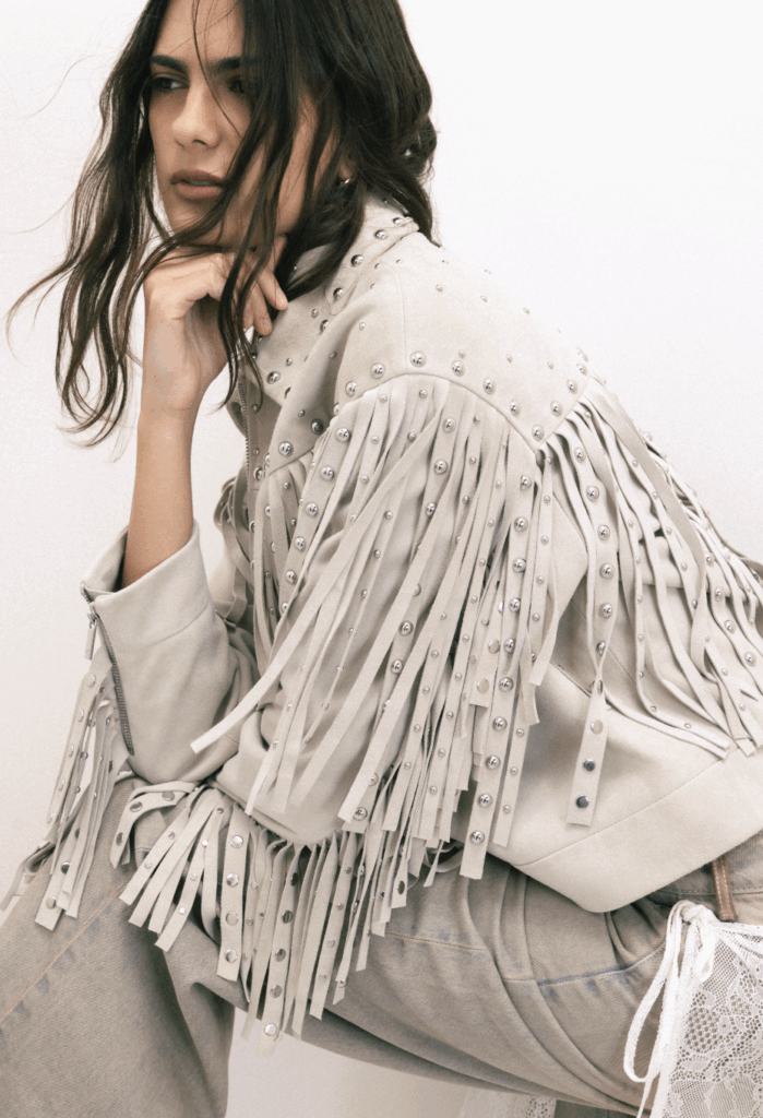 En un entorno donde el movimiento es constante, el diseño se convierte en aliado: chaquetas amplias, vestidos sueltos, denim de caída amplia y capas ligeras facilitan la transición del día a la noche. Los flecos aportan dinamismo visual y las siluetas relajadas permiten libertad sin perder presencia.